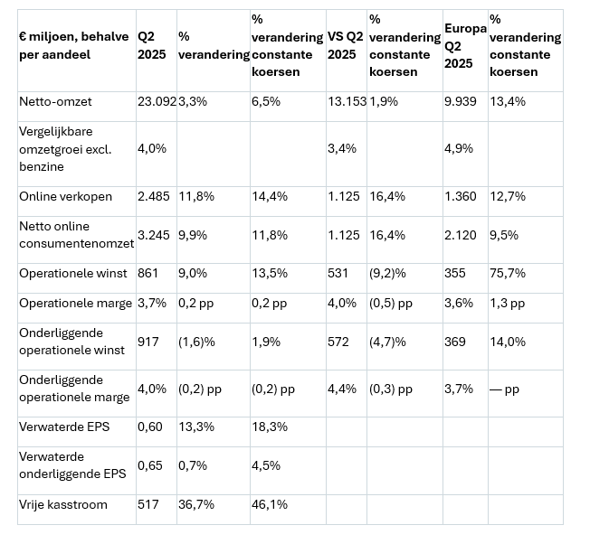De kwartaalcijfers van Ahold Delhaize vielen zeker niet tegen. De impact van de dollar valt mee; kort na Liberation Day zakte de dollar snel weg en gegeven het feit dat 65-70% van omzet en winst in de VS wordt gemaakt, trekt dat een zware wissel op het concern.