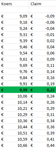 Nog meer korting krijg je als je instapt via de claims. Hieronder zie je, bij een koers van 10.20 euro, de waarde van de claim zoals deze momenteel verhandeld wordt.