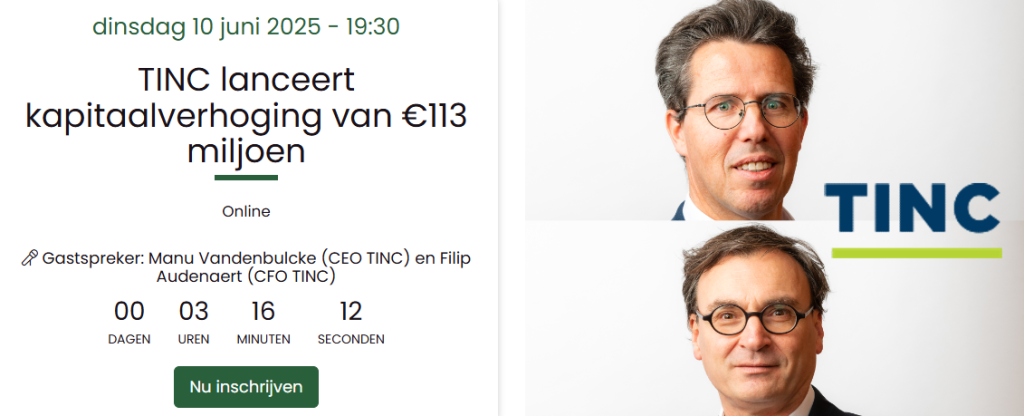 TINC heeft grootse plannen: ze willen hun portefeuille tegen 2030 verdubbelen naar €1 miljard. Daarom halen ze nu €113,2 miljoen op via een claimemissie. TINC wil verder groeien.