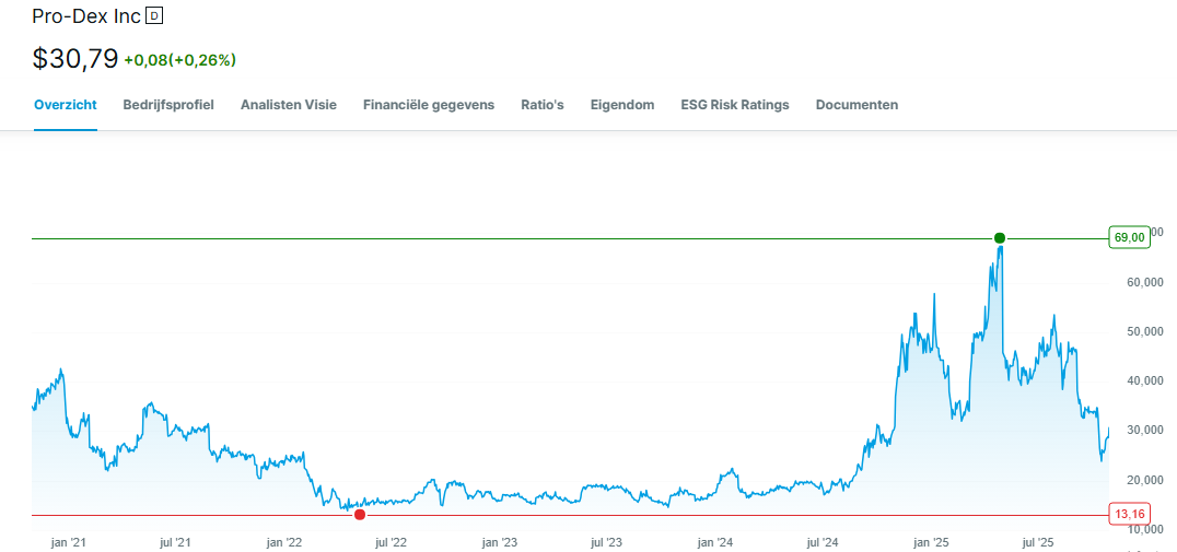 Gelukkig gaat het met Pro-Dex beter, dat moet dit jaar ook nog wel een inhaalslagje maken maar er zijn voldoende triggers om daar wat te laten gebeuren. Hier de grafiek: