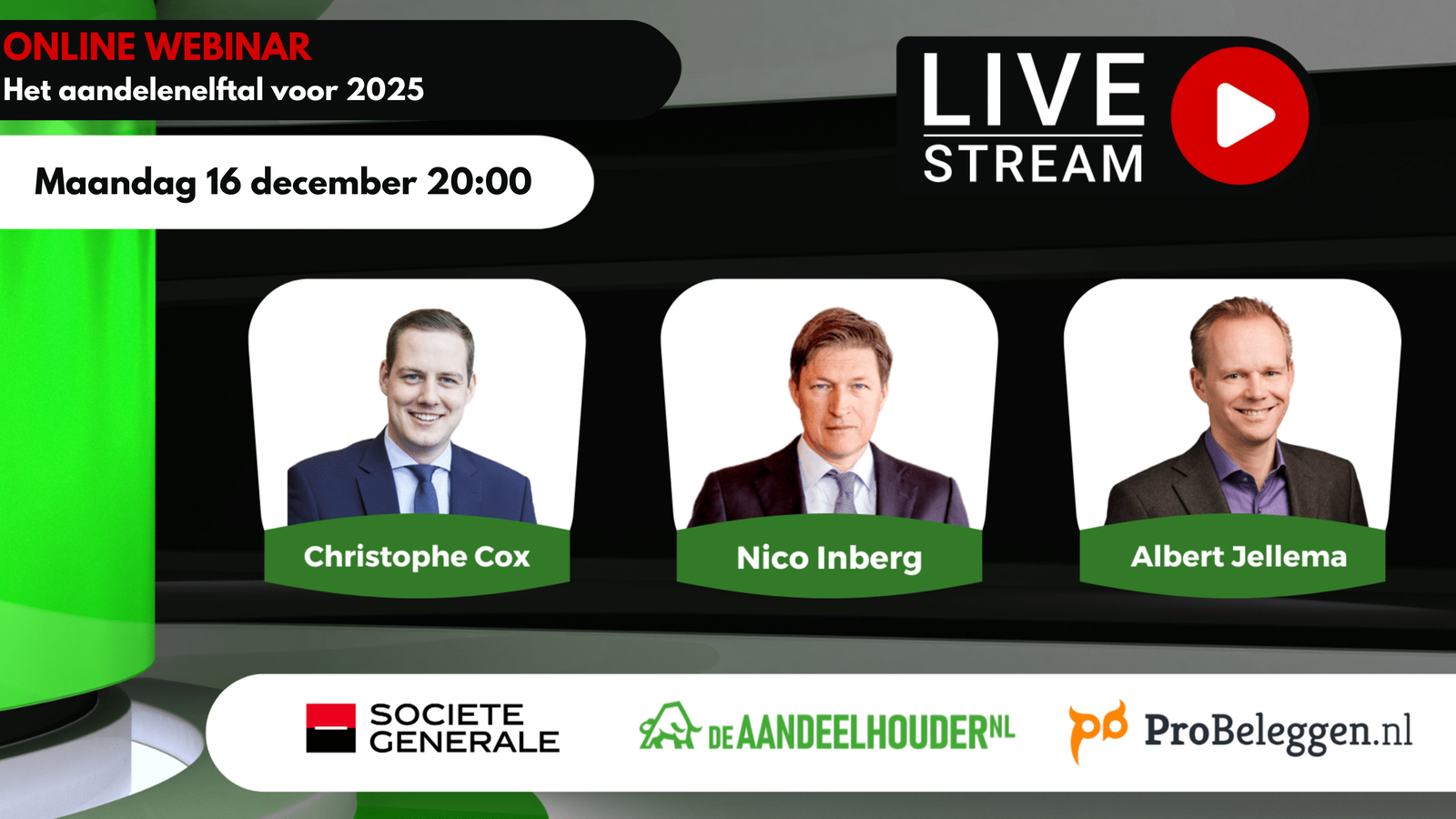 Deelname aan het webinar is gratis en u kunt gedurende het webinar vragen stellen aan Albert, Nico en Christophe. We hopen u graag te zien!